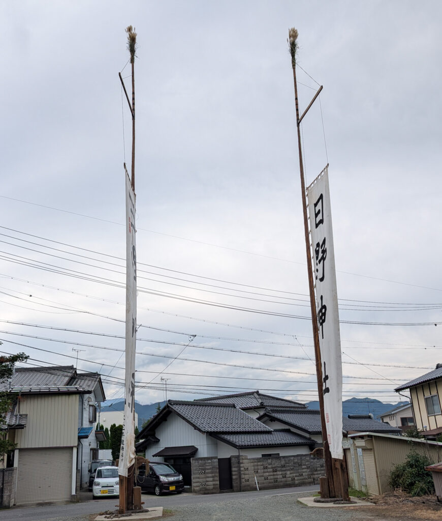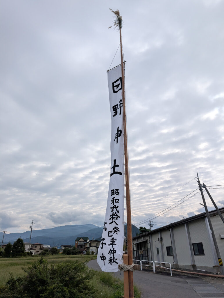 村の北側の「のぼり旗」は、私の子どものころは木島線の踏切近くに立ってましたが、今は大分手前で家の畑の横になっています。(45年ぶりに「のぼり旗」を見た!!!)